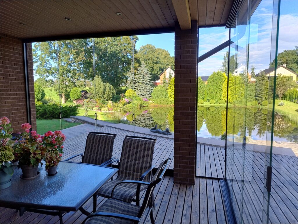 Raamideta lükandklaasid muudavad sinu terrassi või veranda kasutatavaks aastaringselt. Klaasseinad kaitsevad tuule ja vihma eest, säilitades samal ajal avara ja takistusteta vaate aeda.